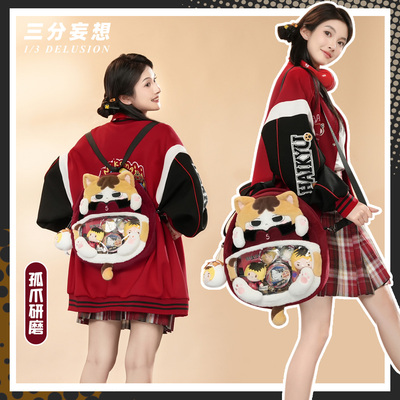 三分妄想排球cos孤爪研磨毛绒包斜挎双肩大嘴痛包秋冬无定金发卡